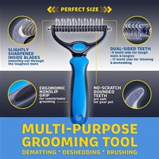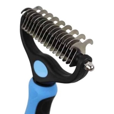 Dvostranska krtača za odstranjevanje poddlake in razčesavanje dlake je primerna za vse kosmatinčke s srednje dolgo in dolgo dlako! Še posebej je nepogrešljiva v času, ko ljubljenčki menjajo dlako.