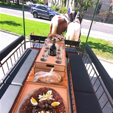 Pojedina na kočiji! SUPER CENA za gurmansko doživetje s konji na lojtrniku, ki traja 2,5-3 ure in vključuje degustacijo suhomesnih izdelkov in izbranega vina!