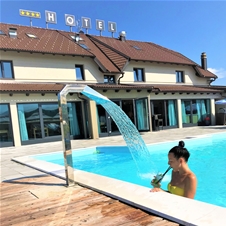 Moderno zasnovan hotel je pričel z delovanjem v letu 2018, razpolaga s parkiriščem, wi-fi, moderno opremljenimi sobami, čudovitim zunanjim bazenom, savno in fitnesom.