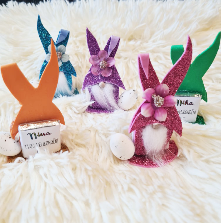 Na veliko noč je običaj, da se zbere družina in kaj je lepšega kot najdražjim pripraviti še malo presenečenje: samostoječega škrata s čokolado v nahrbtniku in imenom! Verjemite, ob velikonočnem kosilu, ga bo vesel vsak član družine. Mala sladka simpatična darila za domače, sorodnike ali prijatelje.