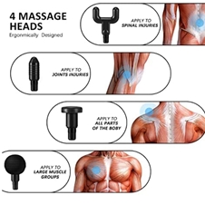 Sprošča mišice in je primerna tudi za profesionalne športnike. Masažna pištola s štirimi nastavki in štirimi stopnjami masažne moči.