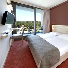 Sobe so moderne in udobne, večinoma s pogledom na morje, bazen in Poreč, ki je ponoči še bolj čaroben, ko se prižgejo luči restavracije in prispevajo k magičnemu vzdušju. V sobah s pogledom na bazen lahko tudi z balkona uživate v večernem programu, če pa iščete svoj mir, boste bolj zadovoljni v sobi, ki gleda na park.