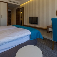 Standard sobe so moderno urejene, klimatizirane in opremljene z dvoposteljno posteljo, kopalnico s tušem in wcjem, sefom, mini barom ter SAT TV. Na voljo je tudi brezplačni internet.