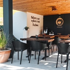 V sklopu objekta je tudi priročen prostor za druženje, morda skupni zajtrk ali le popoldansko posedanje ob kavi ali čaju sredi narave. Posamezni elementi objekta predstavljajo tradicijo našega kraja, ki je prežet z vinogradništvom. Ponovna uporaba odsluženih materialov, daje objektu nedvomno pečat edinstvenosti.