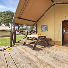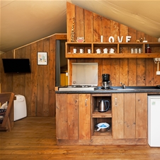 Glamping šotor ima 2 spalnici, opremljeno kuhinjo in jedilnico, kopalnico in prijetno teraso. Od morja in razgleda na Brione vas loči le 5 minut hoje, v 10 minutah pa ste lahko v centru Fažane. V kampu so tudi 3 bazeni.
