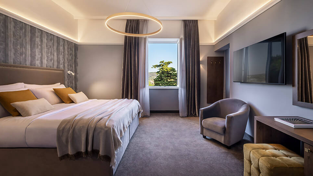 Dvoposteljna soba je velika približno 23-25 m2 in ima zakonsko posteljo ali ločene postelje z 2 naslanjači in kopalnico s tušem. Soba je opremljena z Valamarjevo luksuzno vzmetnico, posteljnino iz 100-odstotnega bombaža in izborom vzglavnikov, grelnikom vode, ponudbo čajev in kave, mini barom, sefom, sušilnikom za lase, telefonom z direktno linijo, Organic Think, Act & Live kozmetiko, pametnimi funkcijami v sobi, satelitskim LCD TV in brezplačnim brezžičnim internetom.