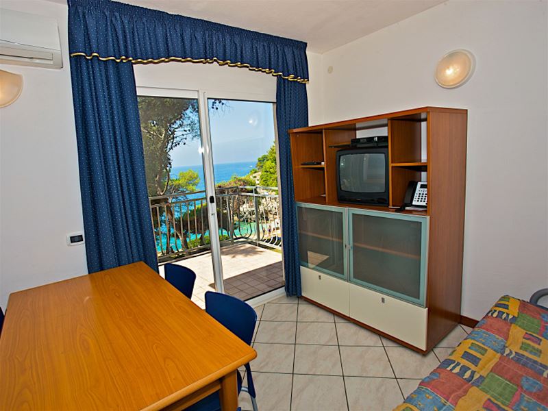 Oprema: TV, sef, hladilnik z zamrzovalnikom, kuhalnik, aparat za kavo, kopalnica s tuš kabino in sušilcem za lase, posteljnina (menjava vsakih 7 dni), blazine, brisače (menjava vsake 3 dni), balkon, 220 V vtičnice.
