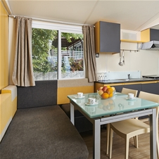 Vse mobilne hiške so klimatizirane, v ceno najema pa sta vključena tudi posteljnina in končno čiščenje. Če iščete možnosti za popoln in udoben oddih, najemite svojo mobilni hiško v kampu Aminess Atea Camping Resort!