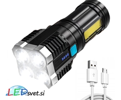 Uporabno! -50% na večnamensko LED ročno svetilko z akumulatorjem! Čas delovanja do 8 ur, domet do 200 m, 4 svetlobni načini! Napaja se preko priloženega USB kabla! Poštnina je brezplačna!