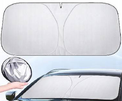 - Uporaba: Namestite na notranjo stran vetrobranskega stekla in pripnite na vzvratno ogledalo ter pritrdite še s senčniki na voznikovi in sovoznikovi strani.