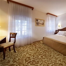 V celoti prenovljen nekdanji benediktinski samostan danes ponuja vse udobje hotela **** s 23 sobami ter luksuzno urejenim apartmajem. Sobe so opremljene s pohištvom v klasičnem stilu in standardno opremo (SAT-TV, telefon, mini bar, fen, sef, klima, internet). Imajo pogled na park ali atrij z vodnjakom iz leta 1835, ki kar vabi v svojo senco, kjer se lahko v duhu preteklosti prepustite domišljiji...