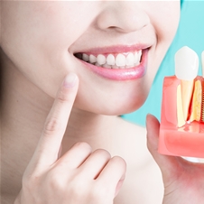 Izjemna rešitev oz. nadomestek za izgubljen zob. Implantate se fiksira v čeljustno kost s pomočjo kirurškega posega.