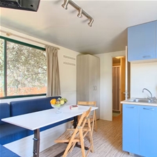 Mobilna hiška ponuja gostom 19 do 24 m² prostora, dovolj udobnega za 4 osebe. Standardna mobilna hišica ima dve spalnici, ena z zakonsko posteljo, druga pa z dvema enojnima posteljama in eno kopalnico, zaradi česar je idealna za družinske počitnice. Kuhinja je opremljena s štedilnikom, hladilnikom, osnovno posodo in namiznim priborom.