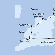 Skupinsko križarjenje z ladjo MSC Seaview Genova-Rim-Sicilija-Ibiza-Barcelona-Marseille-Genova z odhodom 5.9.2026: 7x nočitev s polnim penzionom za 1 osebo v notranji kabini Bella + pristaniške pristojbine + zabavne prireditve ter animacija + brezplačen peš izlet!