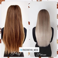 - Ponudba vsebuje: 1x BALAYAGE ali AIRTOUCH PRAMENI v salonu Frizerstvo Weis: pranje glave + olaplex dodatek k barvanju za zaščito las + prameni + striženje in sušenje las (preliv ali kompletna olaplex nega je doplačilo po ceniku salona).