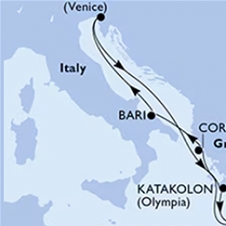 VKLJUČENE NAPITNINE+2 IZLETA! Skupinsko križarjenje vas bo pripeljalo do grškega Katakalona, Aten in Krfa, turškega Kusadasija in Istanbula ter italjanskega Barija. V ceno vključene napitnine in brezplačen ogled Krfa in Barija!