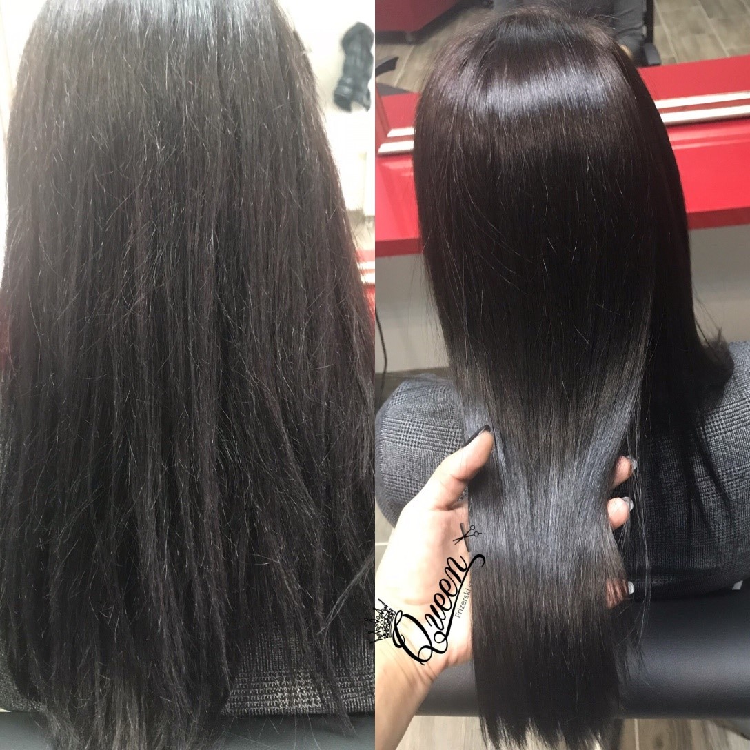 Potek: Sam postopek traja 2-3 ure, in enim postopkom dobite pozdravljen las za naslednje 4 mesece. Potem lahko postopek ponovite, ni pa pogoj. Po tretmaju je potrebno uporabljati šampon brez sulfatov.