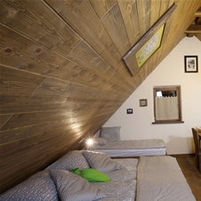 Studio mansarda za 2-4 osebe se nahaja v apartmajski hiški, kjer so štirje popolnoma ločeni apartmaji. Gostom je na voljo dnevno spalni prostor z zakonsko posteljo in enojno posteljo ter dodatnim raztegljivim ležiščem, kuhinjska niša s hladilnikom in mikrovalovno pečico, jedilna miza za 4 osebe, LCD-TV in brezžični internet ter kopalnica (prha/wc).