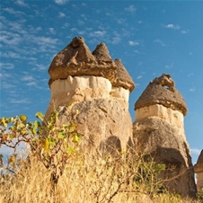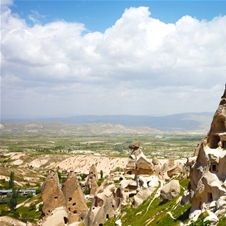 Pokrajina Kapadokije s svojimi oblikami, podzemnimi cerkvami in bivališči spominja na površje Marsa. Stvaritelj te pokrajine je vulkan, ki je ob ponavljajočih se izbruhih v okolico izstrelil ogromne količine lehnjaka. Zaradi vremenskih vplivov so se nekatere plasti lehnjaka sprijele, druge pa so se izprale. Prvi pribežniki so se na tem področju naselili v 7 st. Kasneje so jim sledili menihi, ki so v mehke stene izdolbli cerkve, kapele in samostane. Na potovanju se bomo peljali tudi skozi čudovite pokrajine Avcilar, Güvercinlik in Cavusin, kjer bomo imeli postanke namenjene fotografiranju. Obiskali bomo tkalnico preprog in spoznali postopke pridobivanja naravnih materialov: svile, bombaža in volne – vse do končnega produkta. Nočitev na območju Kapadokije.