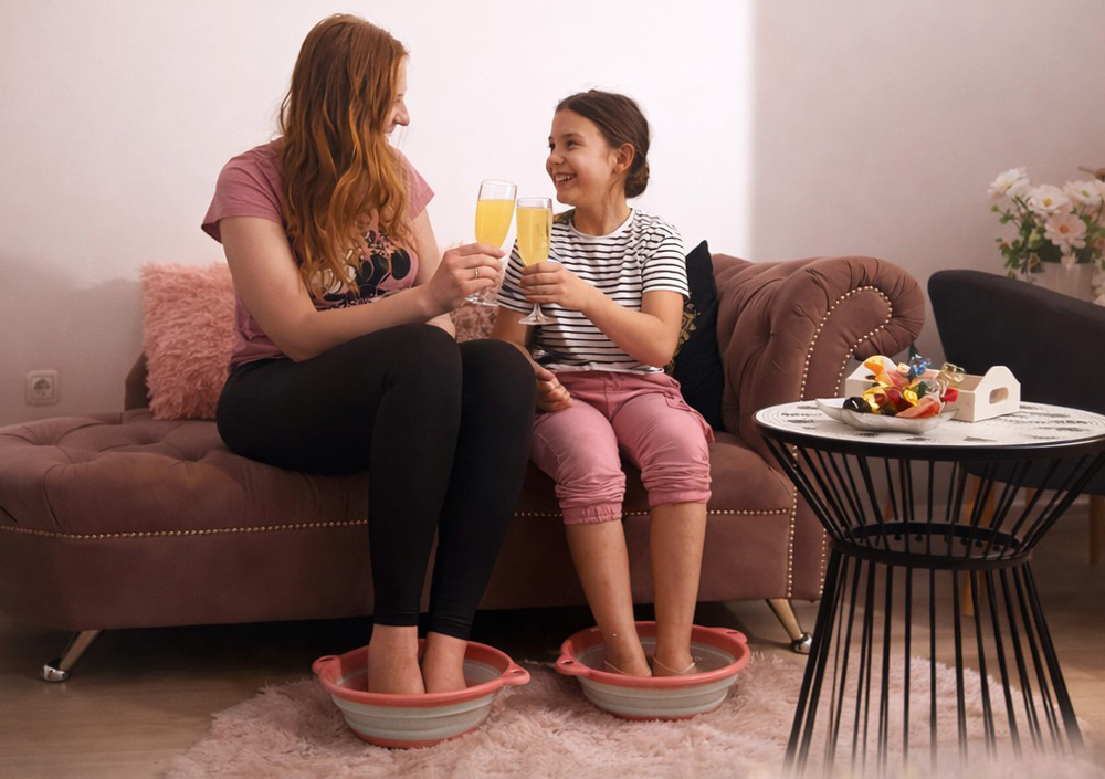 Čas za naju! SUPER CENA za 60-minutno razvajanje Mama & hči v salonu Sprostilni kotiček: kopel za stopala + masaža stopal + maska za obraz + masažo obraza, vratu, dekolteja in lasišča + 2x kozarec soka + praline!