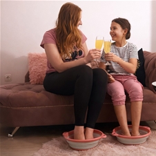 Čas za vaju! SUPER CENA za 60-minutno razvajanje Mama & hči v salonu Sprostilni kotiček: kopel za stopala + masaža stopal + maska za obraz + masažo obraza, vratu, dekolteja in lasišča + 2x kozarec soka + praline!