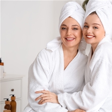 Poseben razvajalni ritual za mamo in hčerko, kjer se prepletajo smeh, toplina in tiha bližina, v telesu pa se ustvari občutek miru in lahkotnosti.