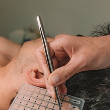 Točke, ki predstavljajo dele telesa, organe ali točke za npr. bolečine, sproščanje itd., lahko stimulirajo s semenkami (nalepke z malimi bunkicami), ki ostanejo na uhlju približno 6 dni. Potem naredijo do 6 ur pavze in jih lahko po potrebi ponovno nalepijo. Točk v ušesu je več kot 200, med njimi je malo več kot 100 zelo točno določenih.