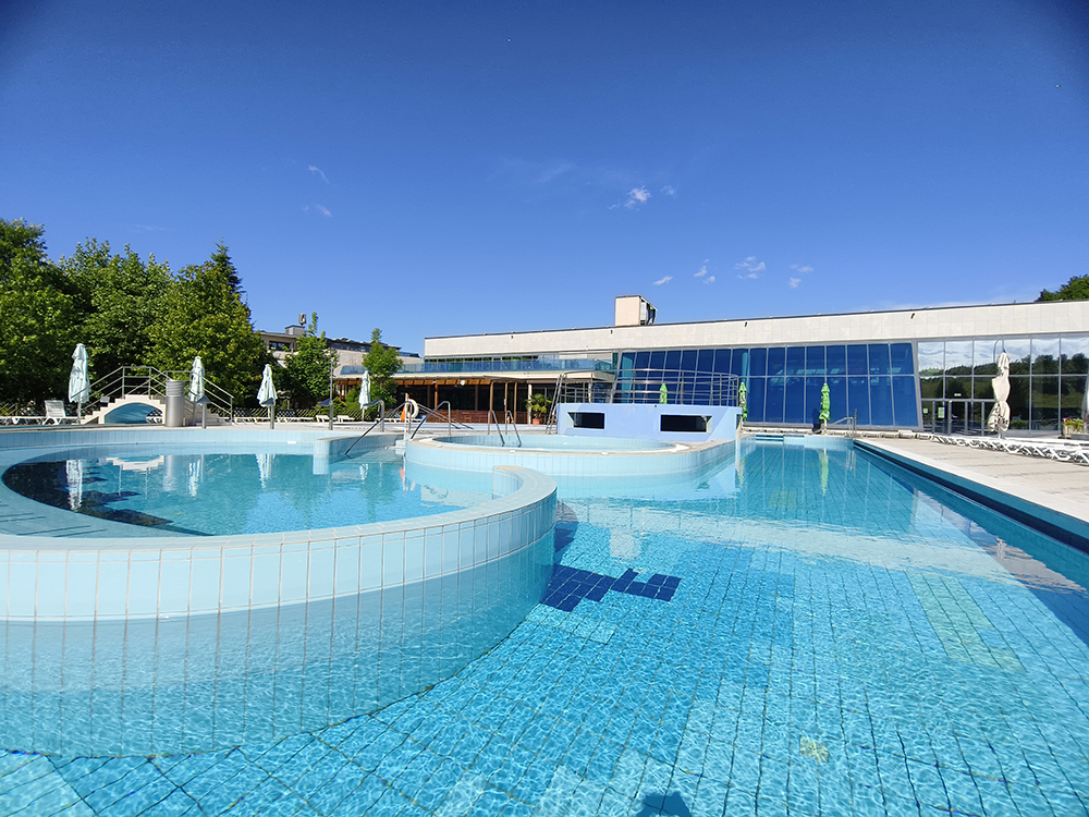 Šest zunanjih bazenov, ki sestavljajo letno kopališče termalnega parka Bioterme, obratuje v poletni sezoni. To s skupno 1.400 m² vodnih površin predstavljajo plavalni in večnamenski bazeni, masažna bazena, počivalni bazen ter otroški bazen, za dodatne radosti pa poskrbi divja reka. Temperatura vode v bazenih je med 29°C in 34°C. Od septembra naprej v okviru zunanjega termalnega parka obratujejo trije zunanji whirlpooli.