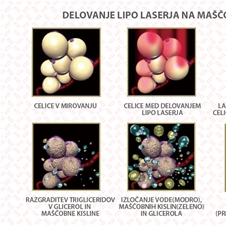 Kako Lipo laser deluje? Foto-kemični efekt, ki ga dosežejo z energijo do 120mW in posebnimi laserskimi diodami valovne dolžine 635 nm do 650 nm povzroči, da se odprejo pore v celičnih membranah, preko katerih se nato shranjeni trigliceridi razgradijo v glicerol in maščobne kisline. S tretmajem limfne drenaže bodo nato poskrbeli, da se te "odpadne" snovi iz telesa tudi izločijo.