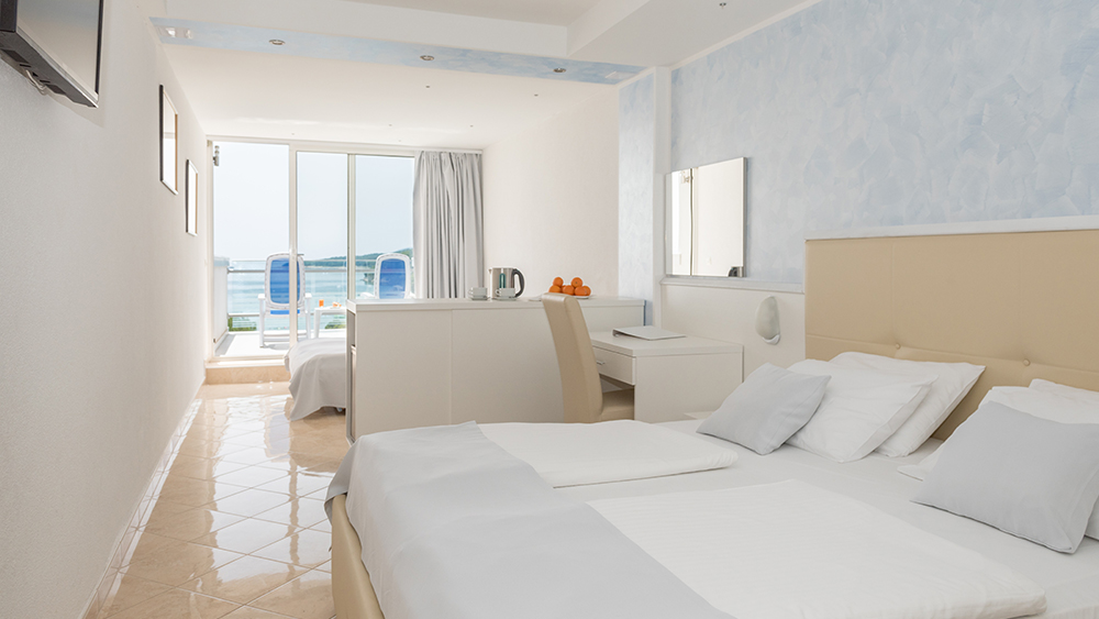 Standard soba je velika 20-25m2 in ima zakonsko posteljo ali dve ločeni enojni postelji, 2 pomožni ležišči, balkon s pogledom na morsko stran, kopalnico s tušem ali kadjo, klimo, SAT-TV, telefonsko linijo, majhen hladilnik, sušilec za lase in sef.