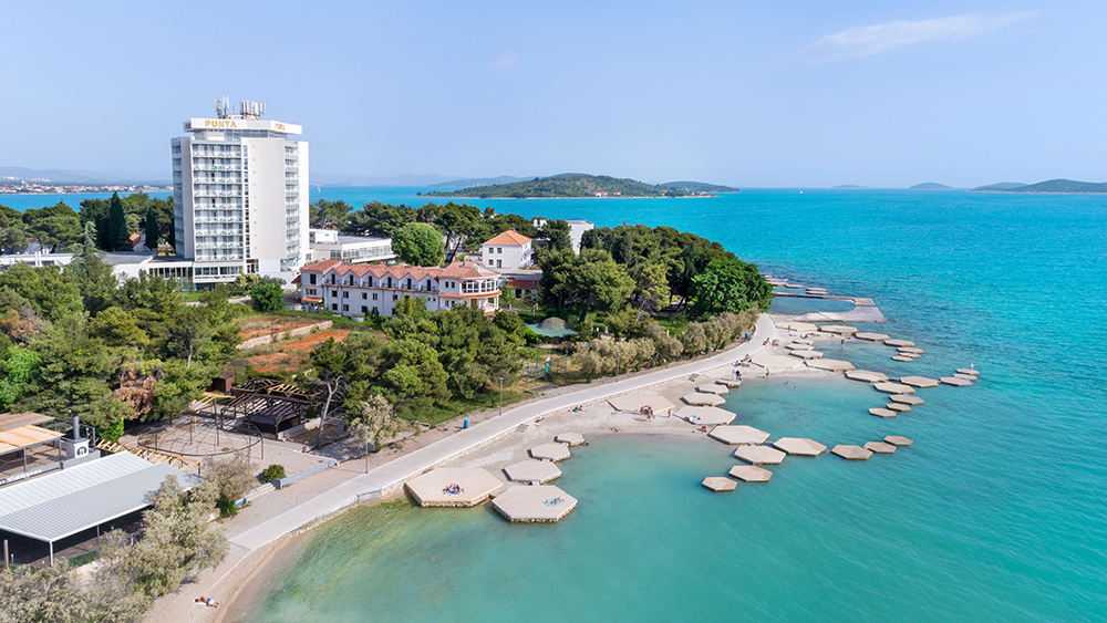 Hotel je 5 km oddaljen od Poreča in se nahaja na polotoku, prekritem z borovim gozdom in urejenimi kamnitimi ter prodnimi plažami. Na voljo je tudi zunanji bazen z morsko vodo in vodna igralnica.