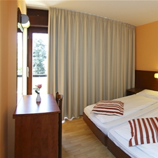 Troposteljna soba z balkonom je velika približno 20-22 m2 in ima kopalnico s tušem ali kadjo. Na voljo je telefon, SAT TV, klimatska naprava, ogrevanje.