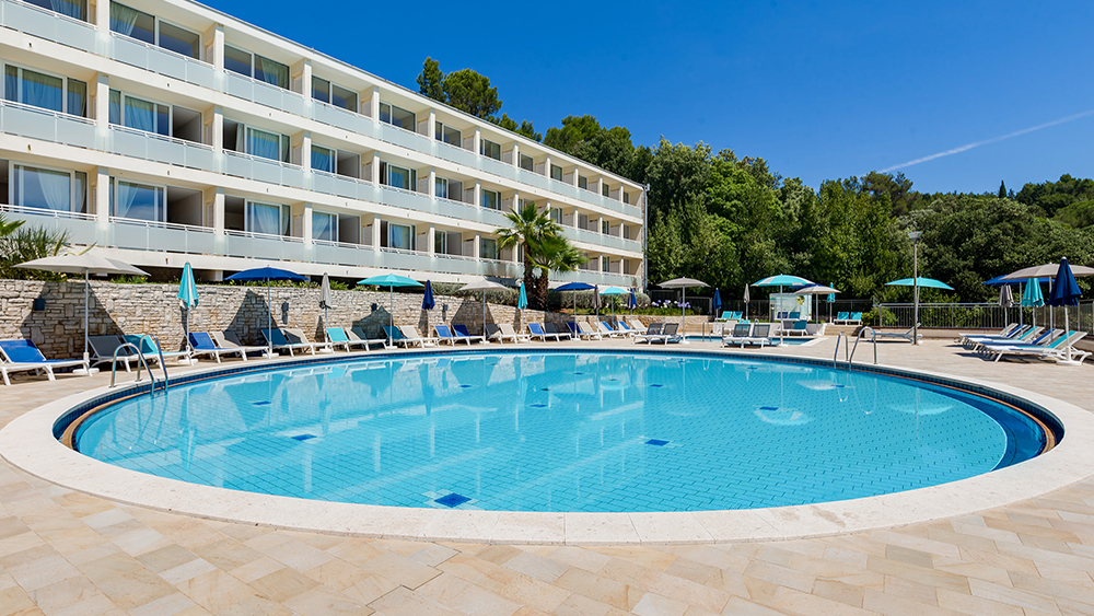 Hotel je 5 km oddaljen od Poreča in se nahaja na polotoku, prekritem z borovim gozdom in urejenimi kamnitimi ter prodnimi plažami. Na voljo je tudi zunanji bazen z morsko vodo in vodna igralnica.