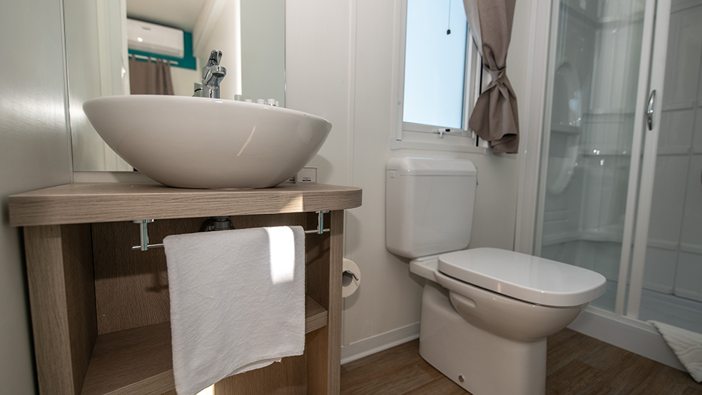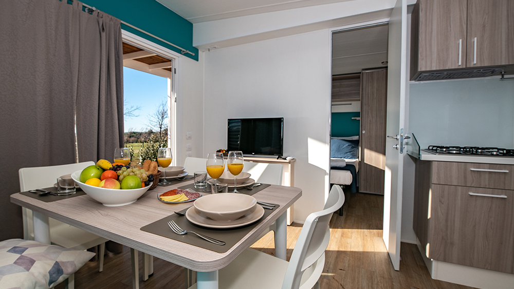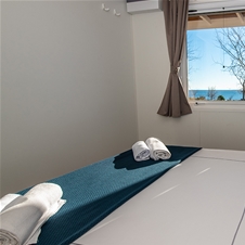 Next mobilna hiška je velika približno 30m2. Na voljo sta dve spalnici, ena z zakonsko posteljo in ena z ločenima posteljama. Na voljo je splano bivalni prostor z raztegljivim kavčem, ki služi kot pomožno ležišče ter popolnoma opremljena kuhinja. Mobilna hiška ima tudi klimatsko napravo, LCD TV, sef in dve kopalnici s tušem ter sušilcem za lase. Na voljo je tudi terasa velika približno 20m2.