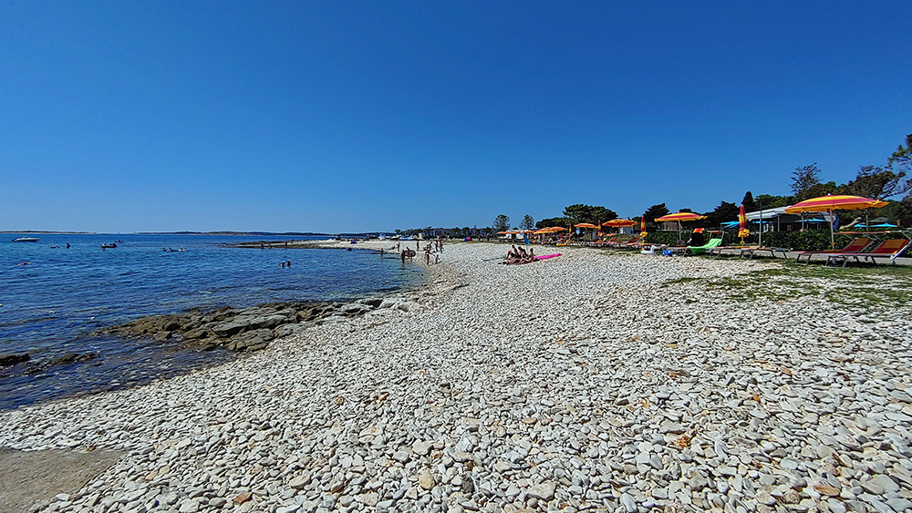 To čudovito območje z dolgo prodnato plažo in lahkim dostopom do morja ponuja nepozaben razgled na številne otočke medulinskega arhipelaga. Na plaži so kabine za preoblačenje in z doplačilom so še na voljo ležalniki in senčniki.