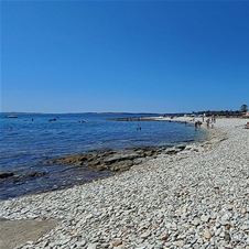 To čudovito območje z dolgo prodnato plažo in lahkim dostopom do morja ponuja nepozaben razgled na številne otočke medulinskega arhipelaga. Na plaži so kabine za preoblačenje in z doplačilom so še na voljo ležalniki in senčniki.