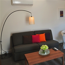 Apartma je velik približno 35 m2 in ima spalnico z zakonsko posteljo ter spalno bivalni prostor s kavčem ter popolnoma opremljeno kuhinjo. Na voljo je kopalnice s tušem in sušilcem za lase, TV, telefon ter sef. Apartma ima balkon.