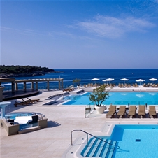 Le nekaj korakov od morja, harmonično vpet v zdravilni objem dišečega mediteranskega parka, ponuja idealno vzdušje za družinske počitnice in sprostitev. Resort ponuja 2 zunanja bazena z morsko vodo.