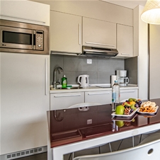 Apartma je velik približno 35 m2 in ima dve splnici, eno z zakonsko posteljo in eno z ločenima posteljama ali pogradom ter spalno bivalni prostor s kavčem in popolnoma opremljeno kuhinjo. Na voljo je kopalnice s tušem in sušilcem za lase, TV, telefon ter sef. Apartma ima balkon.