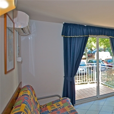 Apartma je velik približno med 35-40m2 in ima spalnico z ločenima ležiščema ter kopalnico s tušem. Apartma ima tudi spalno bivalni prostor z kavčem ter popolnoma opremljeno kuhinjo. Na voljo je klimatska naparava, TV, telefon ter sef. Apartma ima balkon.