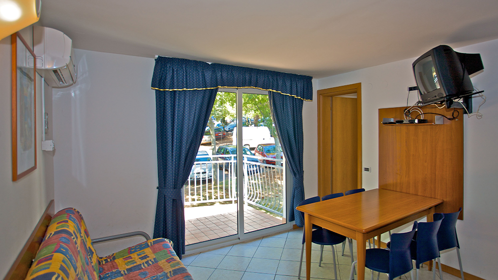 Apartma je velik približno med 35-40m2 in ima spalnico z ločenima ležiščema ter kopalnico s tušem. Apartma ima tudi spalno bivalni prostor z kavčem ter popolnoma opremljeno kuhinjo. Na voljo je klimatska naparava, TV, telefon ter sef. Apartma ima balkon.