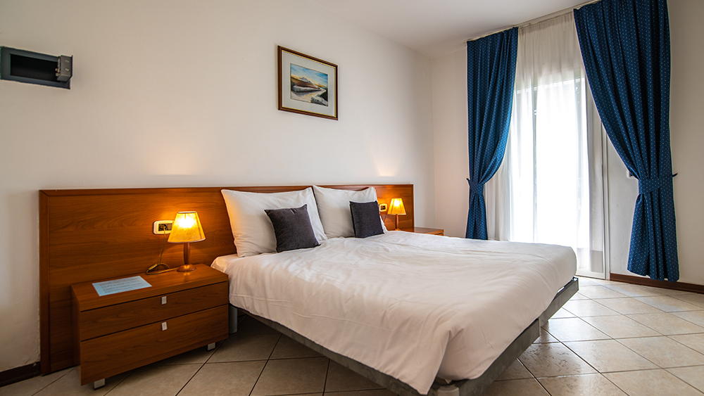 Apartma je velik približno med 30m2 in ima spalnico z zakonsko posteljo ter kopalnico s tušem in sušilcem za lase. Apartma ima tudi spalno bivalni prostor z kavčem ter popolnoma opremljeno kuhinjo. Na voljo je klimatksa naprava, TV, telefon ter sef. Apartma ima teraso.