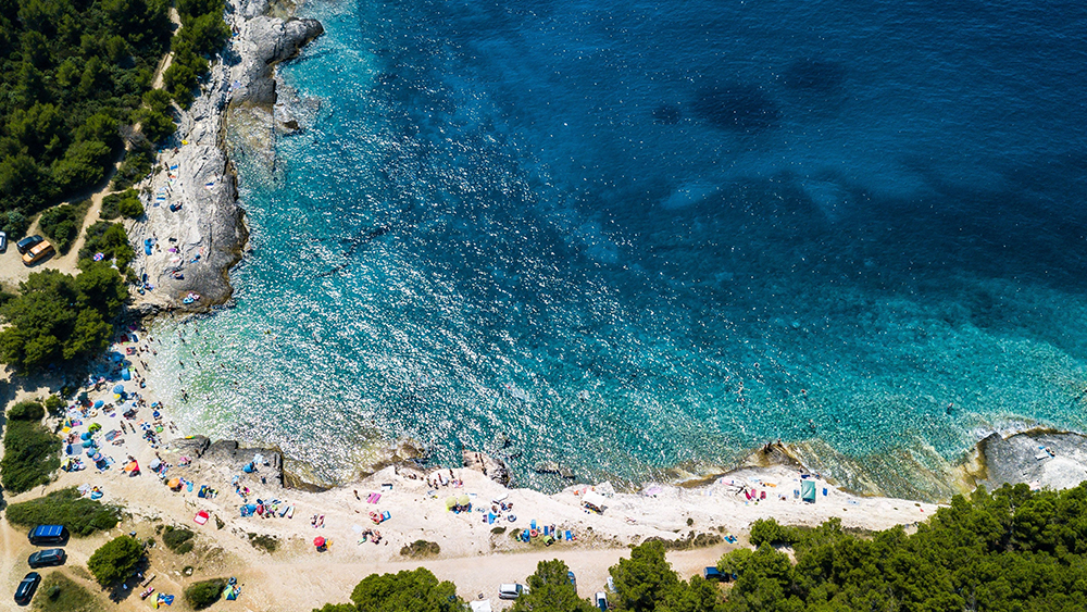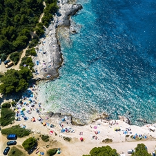 Kamnito pordnate plaže se nahajajo približno 150m od resorta, peščena plaža Bijeca pa je od resorta oddaljena približno 500 m. Plaže imajo naravno senco zaradi borovega gozda, ob doplačilu so na voljo ležalniki in senčniki. Na plažah so na voljo tudi garderobe za preoblačenje.