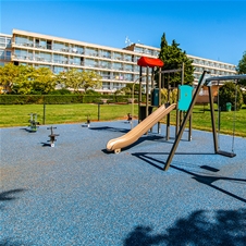 Le nekaj korakov od morja, harmonično vpet v zdravilni objem dišečega mediteranskega parka, ponuja idealno vzdušje za družinske počitnice in sprostitev. Resort ponuja 2 zunanja bazena z morsko vodo.