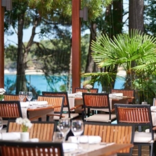 Zajtrk in večerja sta na voljo v restavraciji Plava Resorta, ki se nahaja sredi polotoka, ob bazenu.