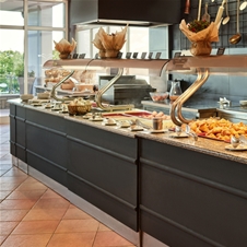 V restavraciji Pineta je na voljo pestra sampostrežna ponudba zajtrka in večerje. Ob doplačilu so še na voljo Lobby bar Pineta kjer si lahko privoščite pijačo, Lovor Real Gril, ki temelji na lokalni tradiciji ter Tuffo Splash bar, kjer si lahko privoščite prigrizke, pijačo in sladoled.