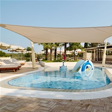 - zunanji bazen za dojenčke velikosti 40 m2 z atrakcijami za otroke, v senci, temperatura 33°C