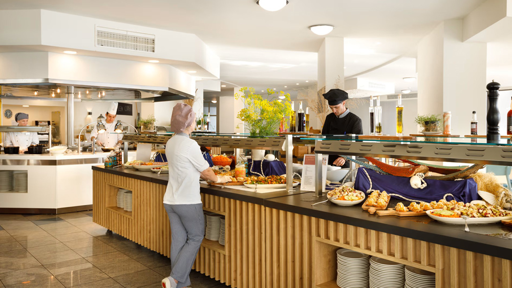 Hotelska restavracija nudi bogato samopostrežno all inclusive ponudbo: zajtrk, kosilo, popoldanska malica in večerja. Na voljo so tudi brezalkoholne gazirane pijače in sokovi, kava, čaj, belo in rdeče vino, pivo, lokalne žgane pijače, 5 mednarodnih koktejlov.