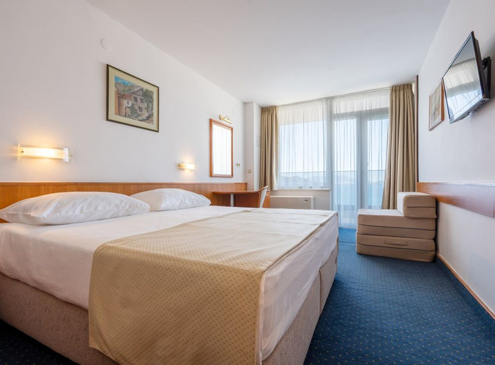 - Možna doplačila: garaža 10 €/dan; otroška posteljica 10 €/dan; ležalnik ob bazenu ali na plaži 5 €/dan; sončnik ob bazenu ali na plaži 5 €/dan; za športne aktivnosti po veljavnem ceniku ponudnika (tenis igrišče 300m od hotela, najem pedolinov, sandolinov, vodnih skuterjev in trampolinov).