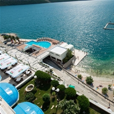 Hotel je del Plava Resorta v Poreču. Pogled na cedrov in hrastov gozd obdaja smaragdno zeleni zaliv na južni strani.
